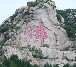 佛山钟天地灵秀,集自然之造化,上高崖摩天、怪石嶙峋;下千亩果园、万树飘香。今人大书法家松阳先生书写十七米硕大佛字,嵌于高山之巅,笔走龙蛇,气吞山河。其弟子柏青摩崖石刻鬼斧神工,力透山背,壮观恢宏,蔚为大观。